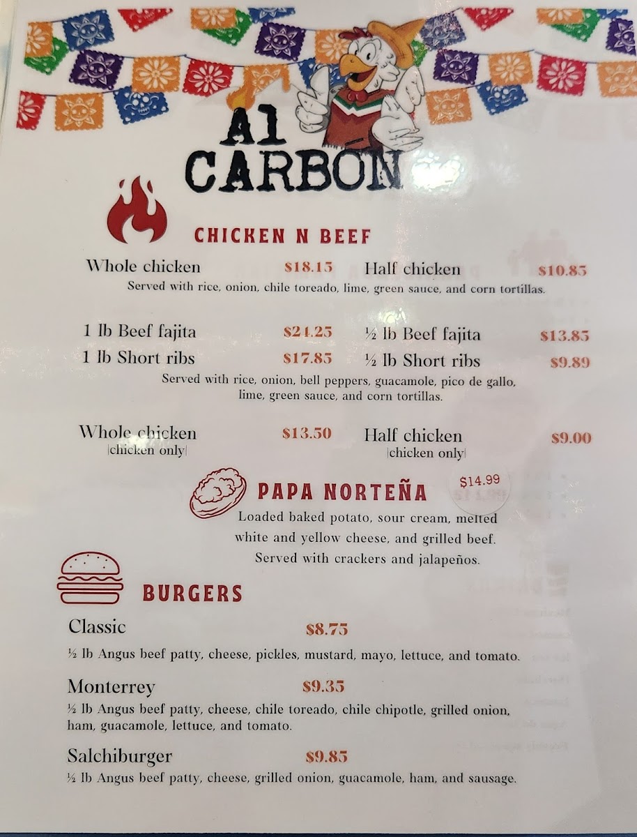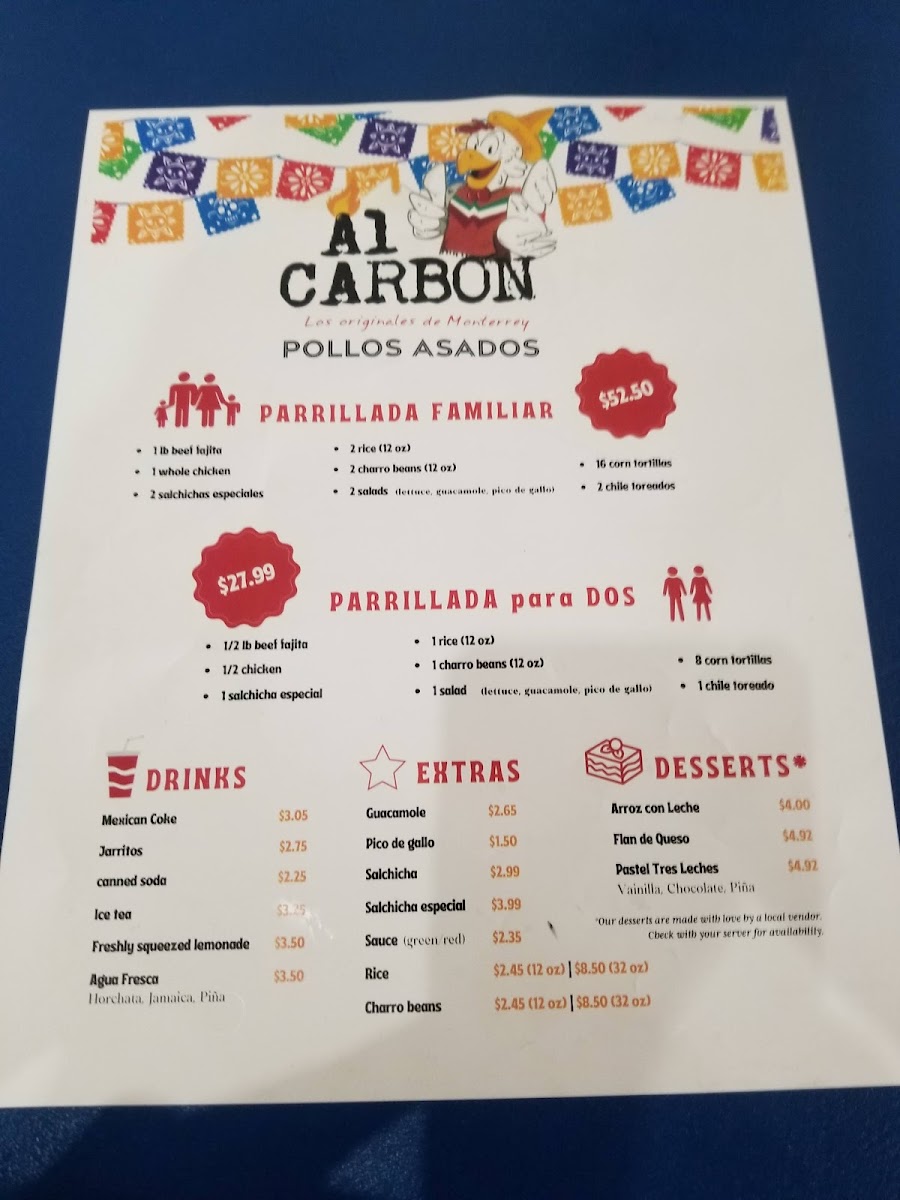 Al Carbon Pollos Asados - Alamo Ranch Menu